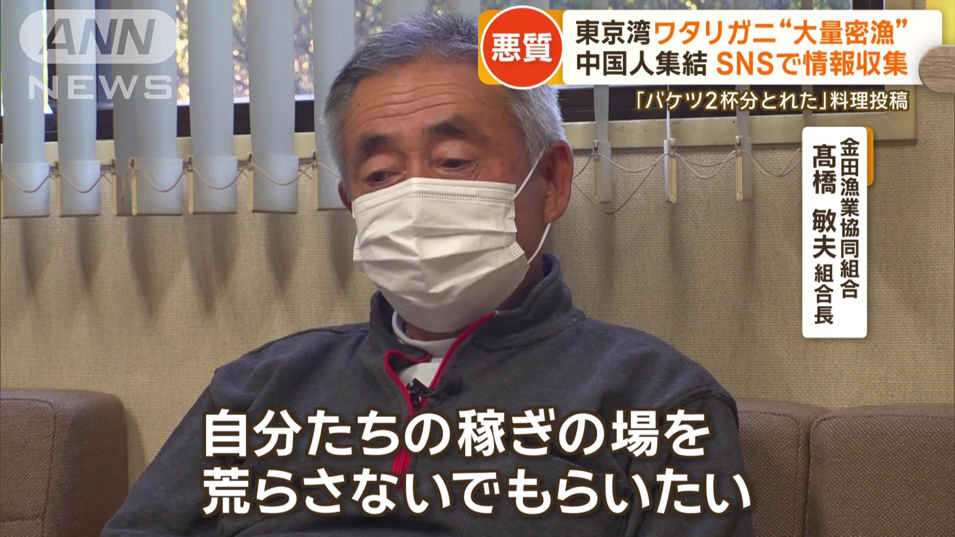 金田漁業協同組合 高橋敏夫組合長:「中国の方が来ている。SNSでどれだけカニをとったとかあげて、場所まで特定している」